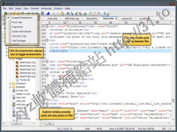UltraEdit 是理想的文本、HTML 和十六進位編輯器,也是高級 PHP、Perl、Java 和 JavaScript